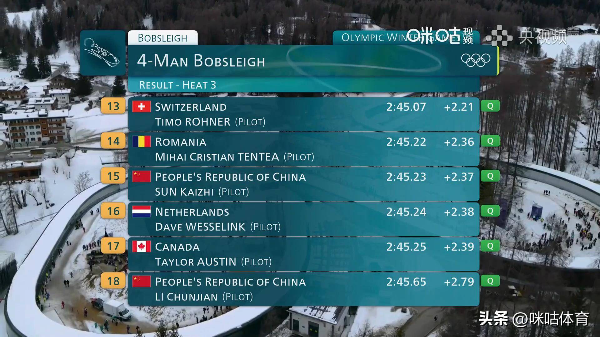 冬奥会四人雪车第三轮网上配资门户怎么登录,中国孙楷智车队和李纯键队第17、18位出战,第三轮结束后分别排名15位和18位,携手晋级第四轮,也就是决赛!